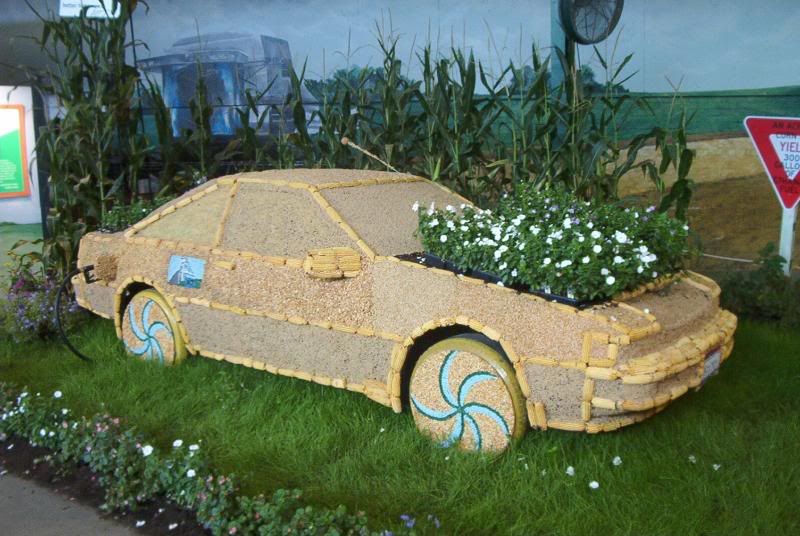 A car covered in corn and soybeans. I think it was supposed to symbolize ethanol used as a fuel.