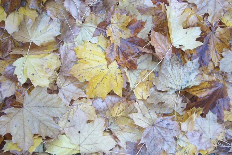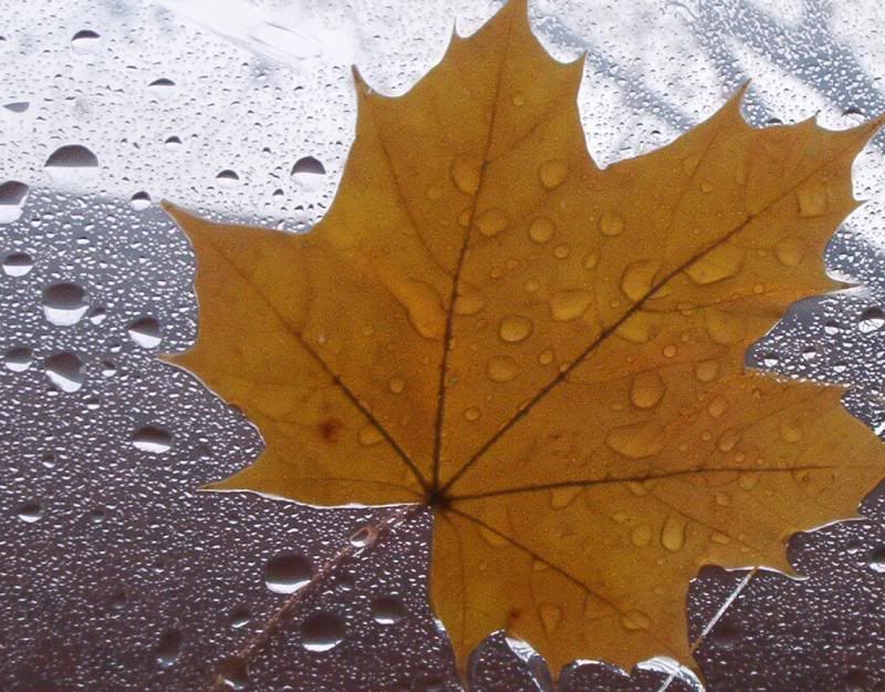 A leaf that was on my windshield Saturday. They're falling hundreds at a time now, every time the wind blows.