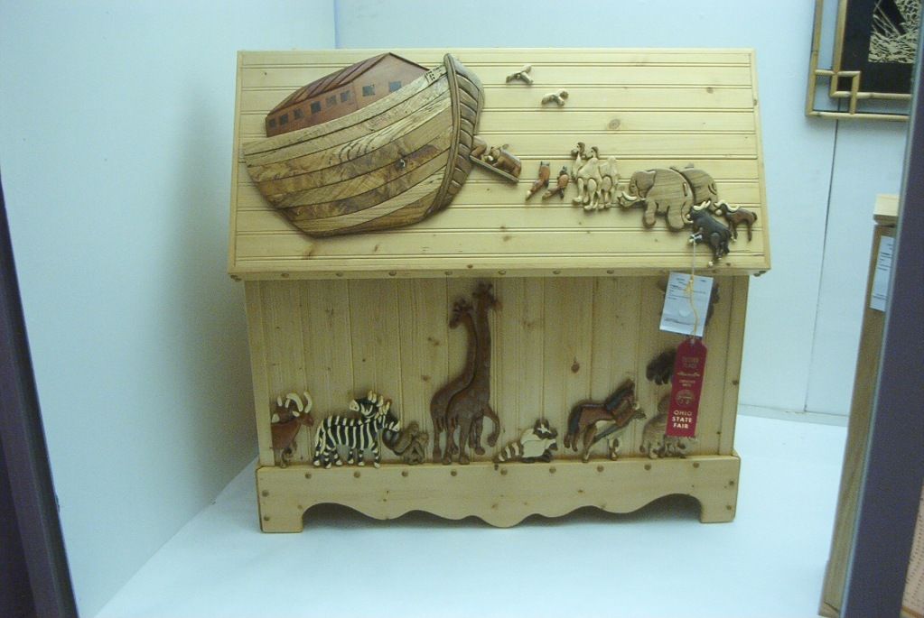 A magnificent Noah's Ark toychest, held together with wooden pegs (no nails). No indication of how long this took to make, but it's obvious that a lot of love and care went into it.