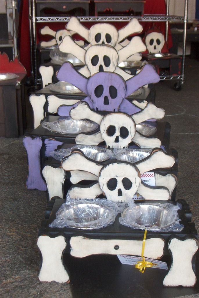 Some guy was selling (or trying to sell) a variety of common household items decorated with skulls and crossbones that he had made. These are Dog bowls. I suppose they might be appropriate if you were planning to poison your Dog...