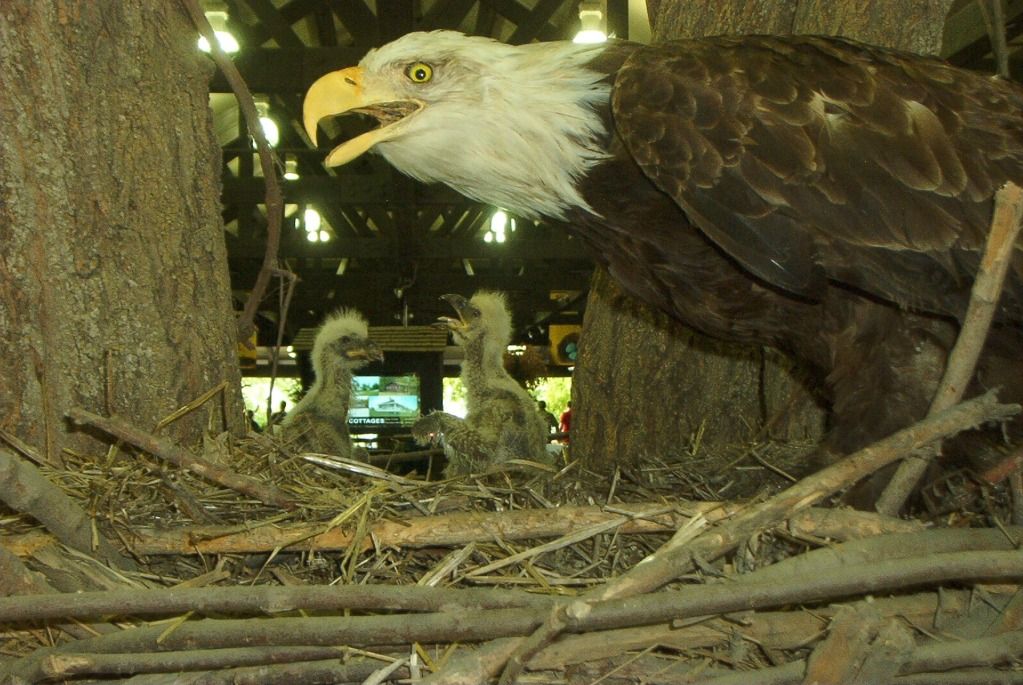An Eagle and her babies, on display in the DNR building. It ensaddens me that they're dead, especially the poor babies who never got to see anything outside their nest, but they're still interesting to look at. In the early part of the 20th century, Ohio had the biggest Eagle's nest ever recorded, but it was destroyed in a storm in 1936.