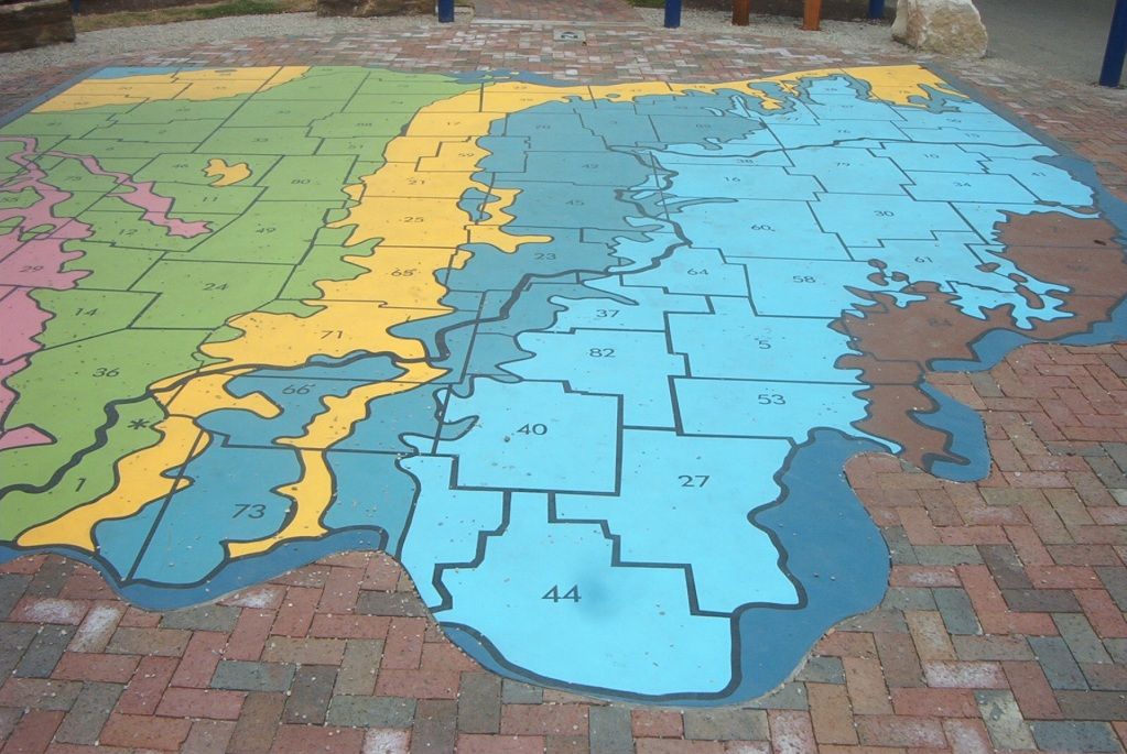 This delighted me. It's a paved circle with a map of Ohio on it, new this year. The coloured contours are bedrocks of different ages, and there's a sort of walkway that circles this area where you can look at examples of the bedrocks, and learn about Ohio throughout the various geological ages. Due to the size of it, I couldn't get a good picture, but I wanted to include it anyway.