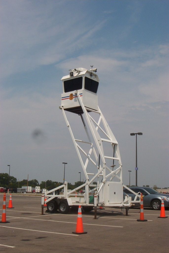 The State Police had this weird control tower set up at the highest point of the parking lot. It looks like it's supposed to be a temporary control tower for aircraft. I suppose they were using it to manage parking somehow. They may just have put it out there to look cool - the Police Academy is right by the Fairgrounds, so they often show off their equipment at the Fair. Last year, when there was an actual bomb scare*, everyone (myself included) crowded around the bomb squad truck as it pulled up outside the Commercial Building, assuming that the police were going to demonstrate their stuff.