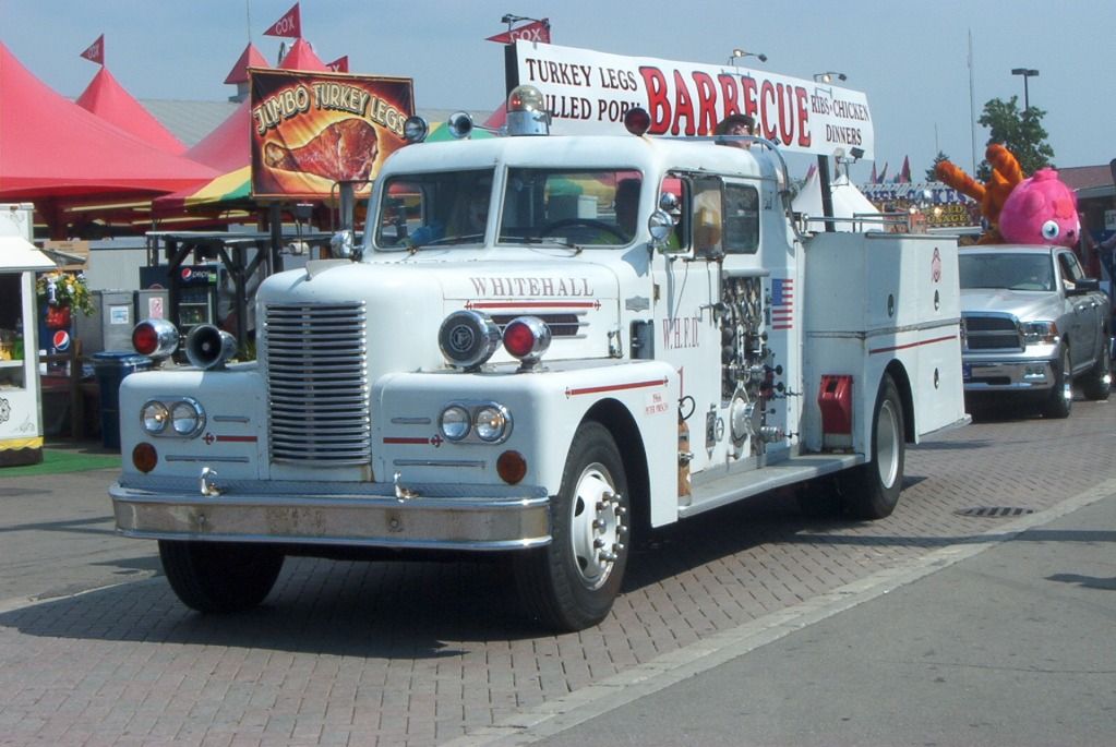 There's a parade every afternoon along the main north/south avenue. Today's parade featured antique fire trucks. There was a brief fashion for white fire trucks in the 50s and 60s. I'm guessing they were thought to be more visible. The town where I grew up had a big white pumper much like this one.